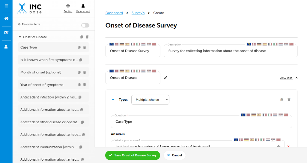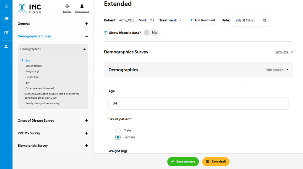 Data in INCbase is collected by using a state of art modular web-based database. Upon becoming an INCbase member, you will be given access to the database to enter and view your own CIDP patients. You will also have the opportunity to change aspects of the database so to fit your local preference.